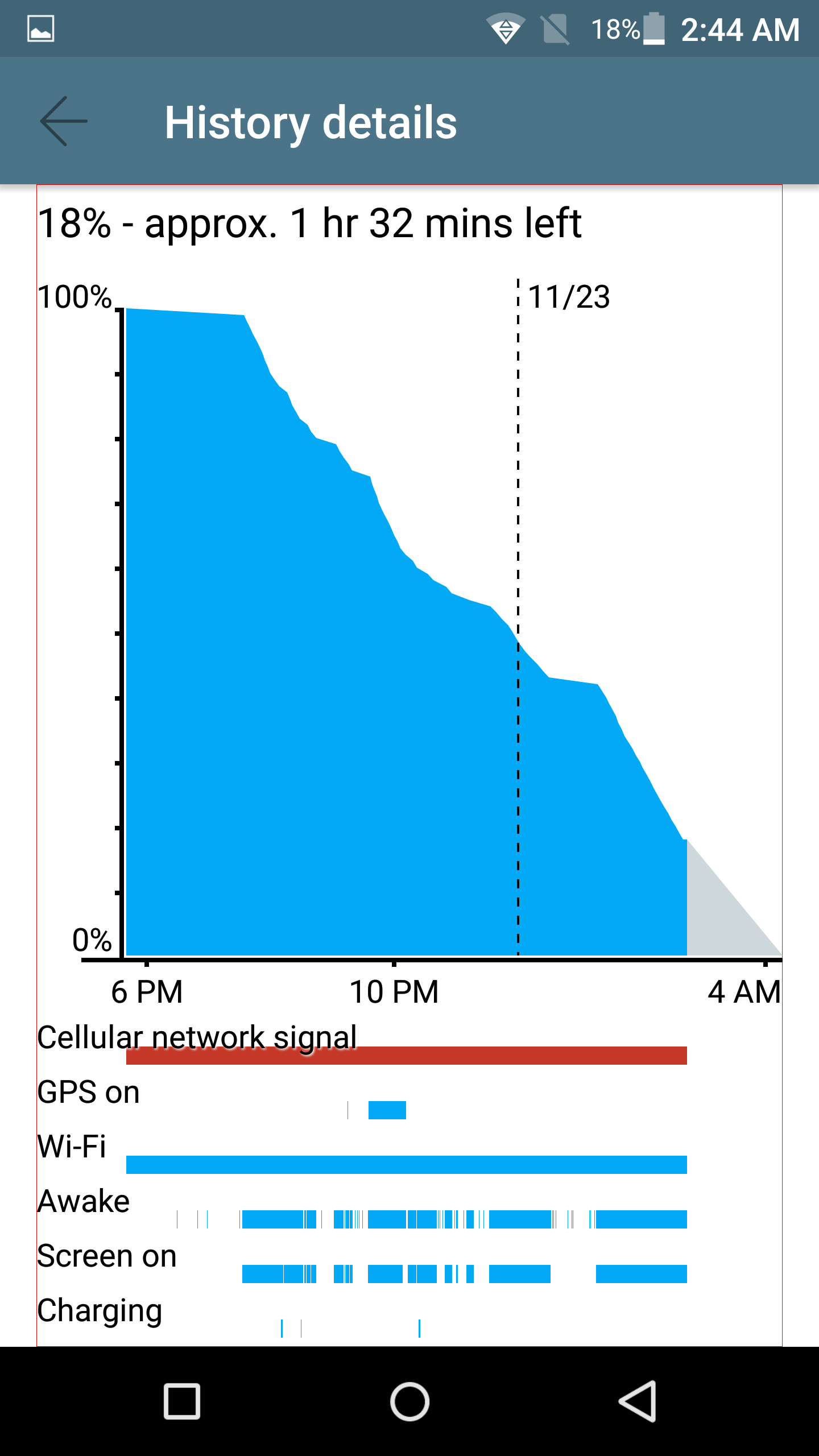 N.B. charging graph indicates the time when the phone was connected to the computer for approx. 1-2 mins for data transfer.