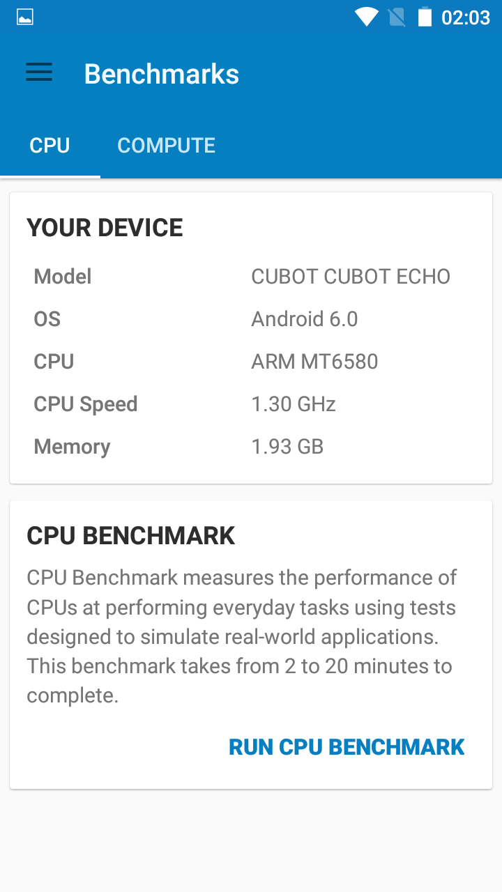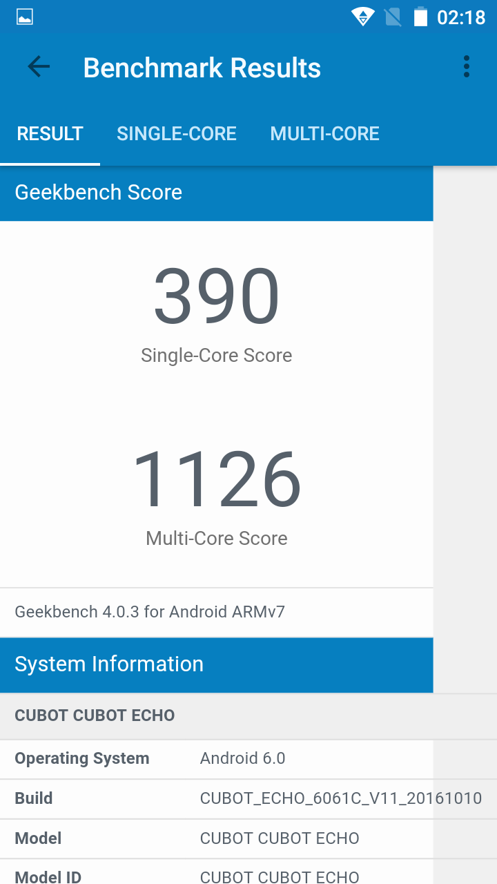 The Cubot Echo runs on a little outdated Mediatek 6580 chip with the clock speeds of 1.3GHz. Also, the phone has 2GB of RAM and 16GB of expandable storage.