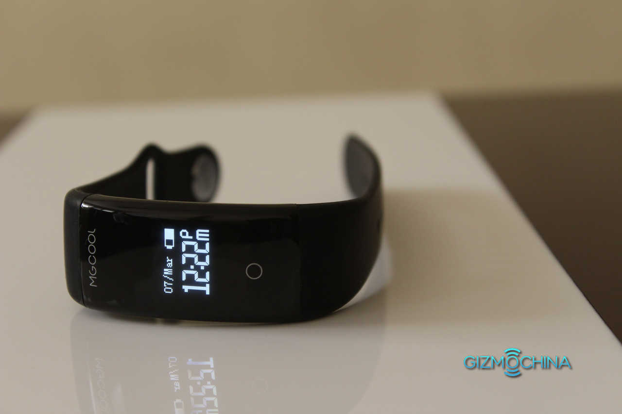 You have one capacitive button on the display that works well along with the MGCOOL branding on top. Overall the wearable feels pretty good for a $25 device.