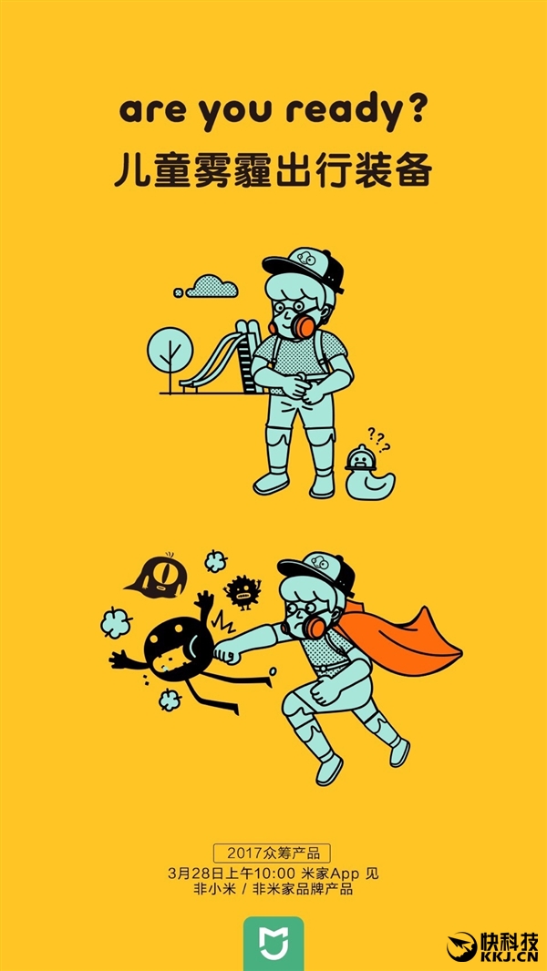 The teaser image depicts a kid wearing a mask with a playground behind him and in another scene you can see him fighting āair monstersā. The idea is the mask provides a form of protection for kids from the harmful particles in the air when they are outdoors. The design of the mask is said to be a one-way valve design and serves as an anti-haze/anti-fog mask.
