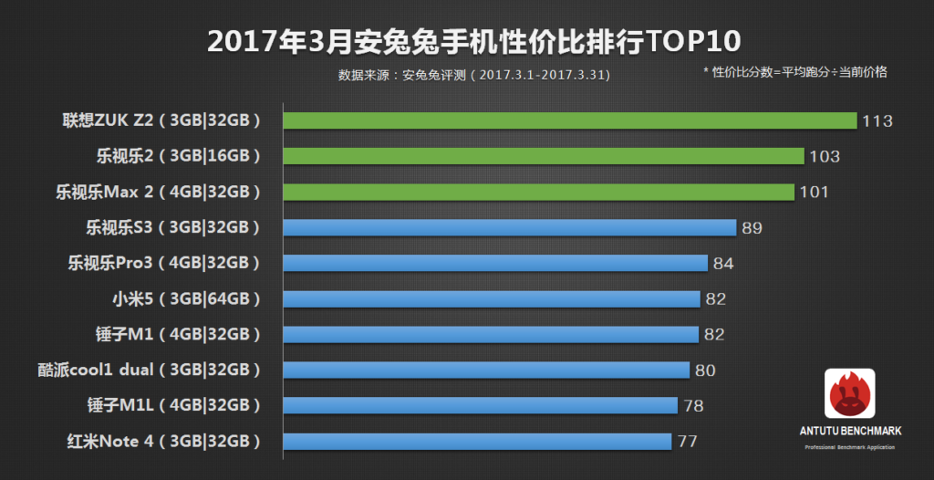 AnTuTu has released its top 10 most value for money smartphones which topped the chart in the month of March 2017. The list is only a little different from that of February, with a few new entrants to the chart. The chart is made mostly of flagships that have been in the market for a while.