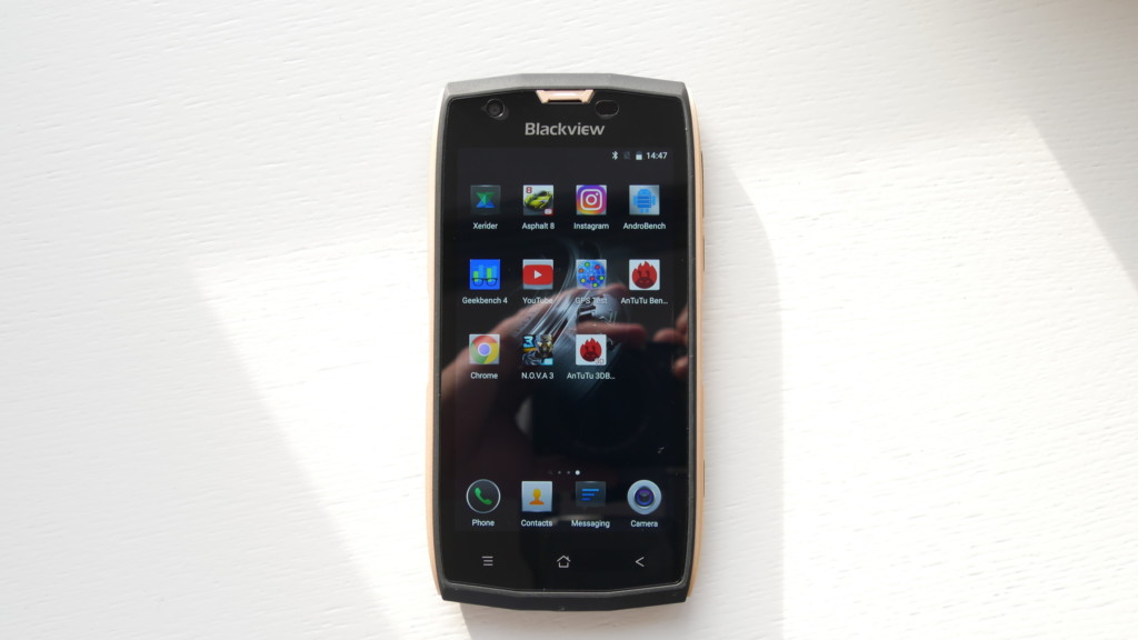 The Blackview BV7000 Pro comes with the Android 6.0 out of the box with the proprietary skin on top of it.The skin removes the app tray and completely redesigns the icons whether you like it or not.
