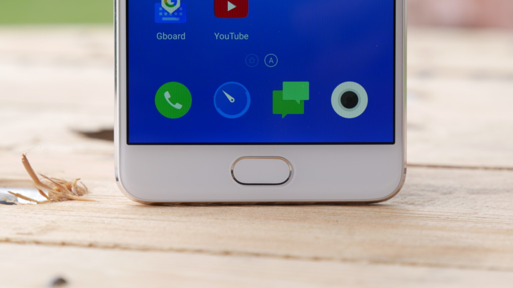 We have a 5MP selfie camera and a notification LED light on the top and on the bottom, there is just a home button that can be either physically pressed or just tapped if you want to use it as a back key. Also, the home button doubles as a fingerprint scanner, which is very accurate but you have to wake the phone up first in order to use it.
