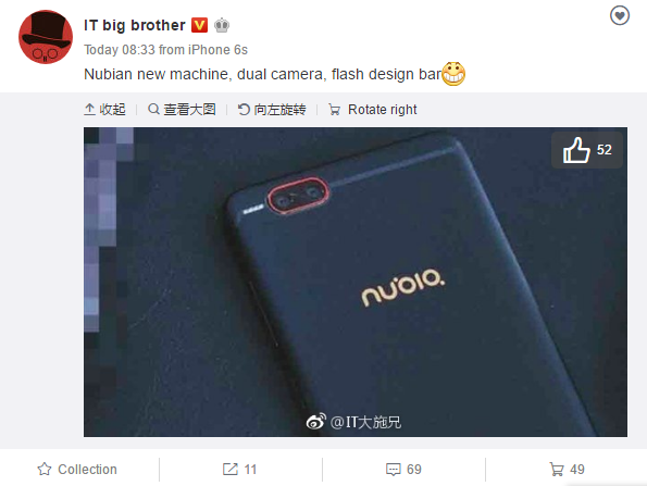 While we are not sure of the authenticity of the leaked image, it looks very much like the Nubia Z17 Mini which was launched recently, except for the flash design. The leaked image shows the strip LED flash is sill located on top of the antenna line but this time around it is at the left side of the cameras unlike the Meizu E2 which was located on the right.