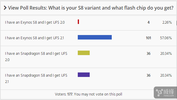 The finding was discovered by an XDA member who owns the Exynos 8895 version of the Galaxy S8 (SM-G950FD). After finding out his own phone uses a UFS 2.1 storage, he implored other Galaxy S8 and Galaxy S8+ owners to find out what flash storage type is present in their phone. The results were varying. While some Galaxy S8 units have UFS 2.1 flash storage, others have UFS 2.0; but all Galaxy S8+ units tested have UFS 2.1 storage. Poll results below.