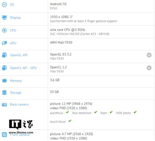 According to the GFXBench listing, the Nova 2 features a 5-inch display with 1920 x 1080p resolution. The device is equipped with a 2.3GHz Octa-core processor which is likely the Hisilicon Kirin 658 processor backed by 4GB of RAM and there is 64GB of storage onboard. As usual, GFXBench data isn’t always correct and on this one, there seems to be a mistake on the camera sensors. The HuaweiNova 2 had earlier been revealed to come with a dual camera setup comprised of a 12MP wide angle sensor + an 8MP telephoto lens. The front camera features a 20MP sensor and the device runs Android 7.0 Nougat.