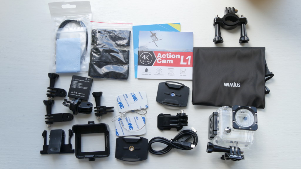 As usual to most of the cheap action cameras, it comes with a ton of accessories that include all sorts of mounts, cradles and so on. A few notable accessories are a waterproof case, a spare battery, and the bike cradle.