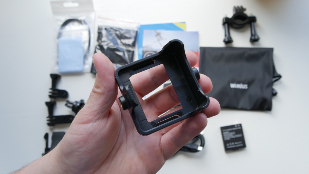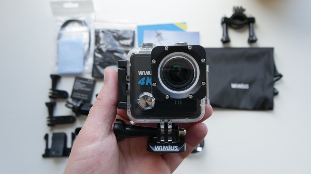 The Wimius L1 sports a bit different than classic action camera design. It has a quadratic shape, it’s made of plastic, the build quality is pretty good and it is very light.