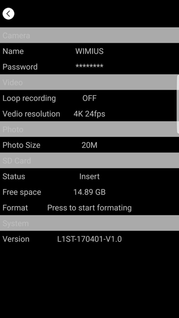 The camera also has a built-in Wifi and that means that you can connect it to your phone using the app. The app allows you to use the phone as a viewfinder. There is a slight delay like on most of the action cameras. You can also watch the videos you shot or adjust some settings and so on.