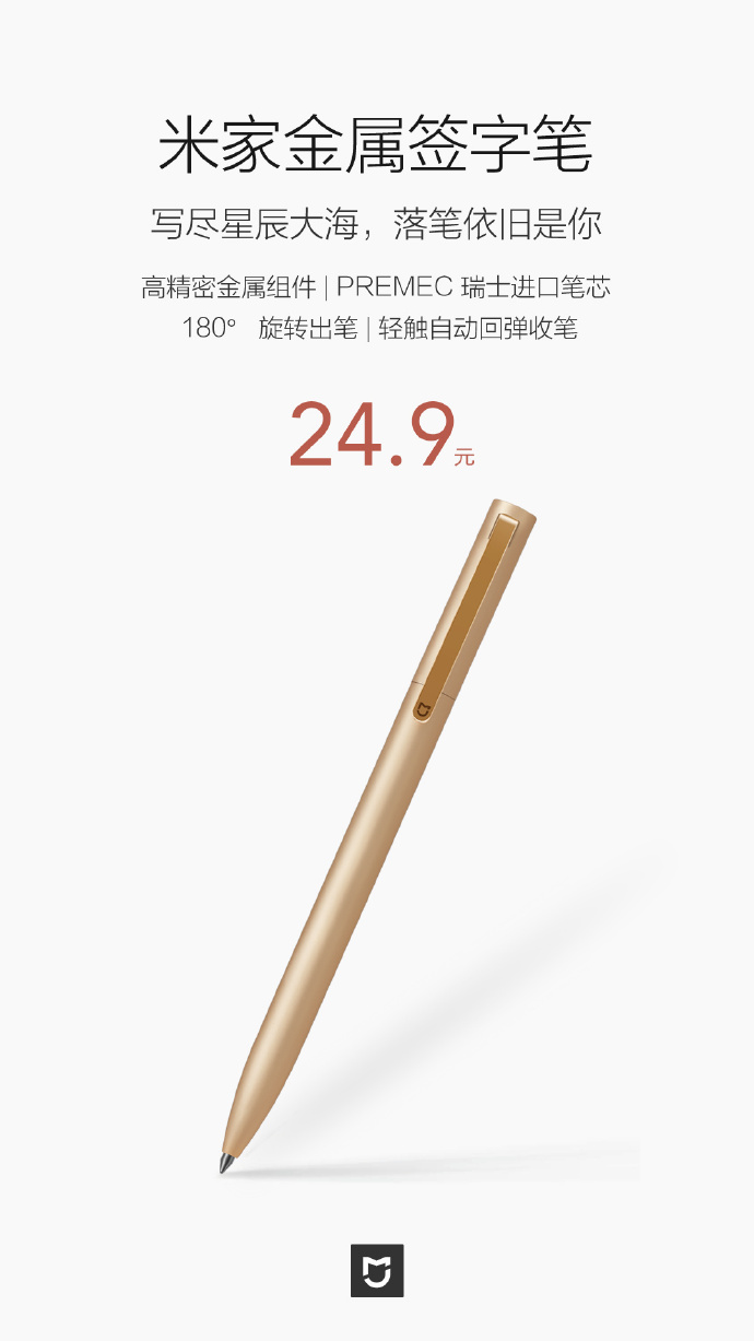 Xiaomi has launched a new signature pen under the MIJIA brand. This time around, the pen uses a metal body and has an 180° spin. recall that Xiaomi first unveiled a similar product around July last year but that was made from plastic. The first-gen Mi Pen was available for 19 Yuan ($2.77) but this new metal-clad Mi Metal Signature pen comes in at 24.9 Yuan ($3.63).
