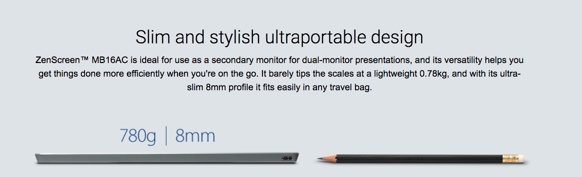 The title may seem a bit confusing, but it’s exactly what it means. ASUS showed off its new ZenScreen USB display at Computex in Taipei this week and the device comes with a pen which helps keep the screen upright in landscape or portrait orientation. The ZenScreen is actually a pretty brilliant device which keeps everything simple and focuses on the basics.