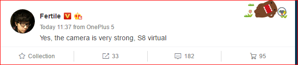 OnePlus may have selected the 10 reviewers already because we have spotted a tech blogger on Weibo who shared some details of the camera. Weibo usually identifies the device a user is blogging with and in this case, the blogger was shown to be using the not yet launched OnePlus 5, meaning he’s likely one of the testers. OnePlus has been teasing the OP5’s camera prowess and the user agrees that the flagship packs a powerful camera which he likened to that of the Samsung Galaxy S8.