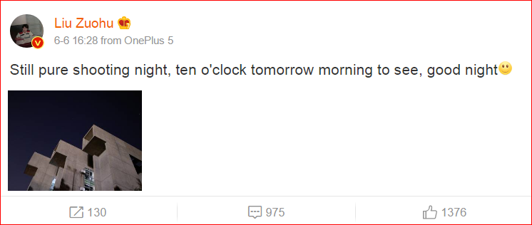 OnePlus CEO Liu Zuotu has again posted another evidence that projects his company’s upcoming flagship model. This time around, the CEO shared a single shot which he claimed in the night shot of the OnePlus 5 camera. Evidently, the photo was indeed captured in the night and the level of clarity is just superb for a smartphone camera’s shot.