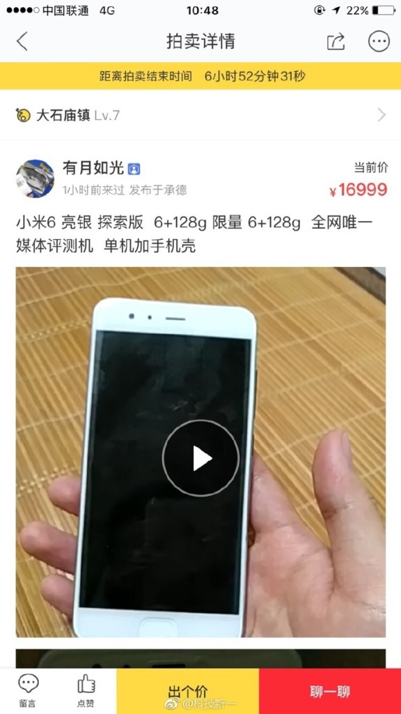 This recent confirmation by the Marketing Director was raised after an auction listing of the Mi 6 silver variant emerged online, with a starting price at ¥3999 (~$585). Since the last source report, the price had shot up to ¥16,999 ($2490.22).