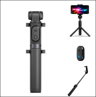 The Xiaomi Tripod stand can function as a tripod and a selfie stick. When folded, it is a tripod and then it can be extended to form a selfie stick. It comes with Bluetooth function.