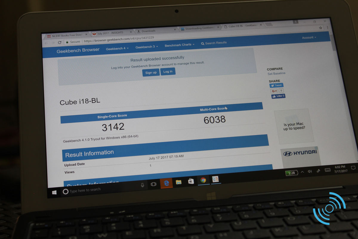 On Geekbench, the Cube Mix Plus performs well. The scores are quite close to previous generation Core M3 Macbook models, which goes on to show you’ll be able to work with apps with ease.