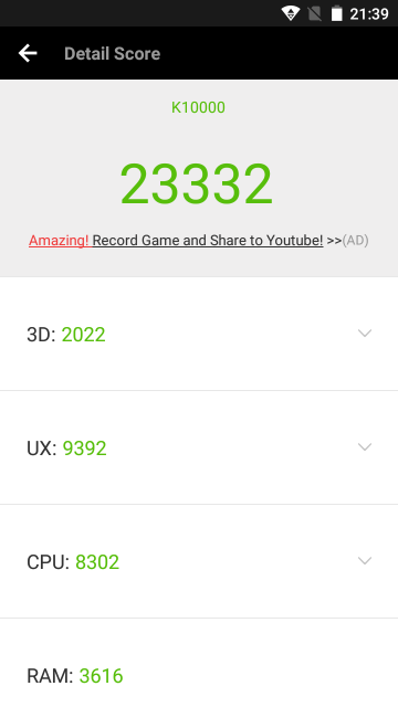 The K10000 has only 3 sensors like accelerometer, light, and proximity. Unfortunately, there is no gyroscope, so if you love using VR headsets, this phone may not be for you.