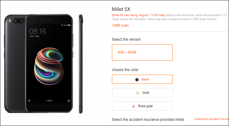 Xiaomi Mi 5X was officially announced last week in China, along with the MIUI 9 and Mi AI speaker. But before then, it had been revealed that the new machine would go on sale on August 1 and pre-order was already being accepted. The Mi 5X indeed went up on its first sale (flash sale) at 10:00 today. The second flash sale will hold today as well by 14:00 and that isn’t expected to last long before all units are sold out.