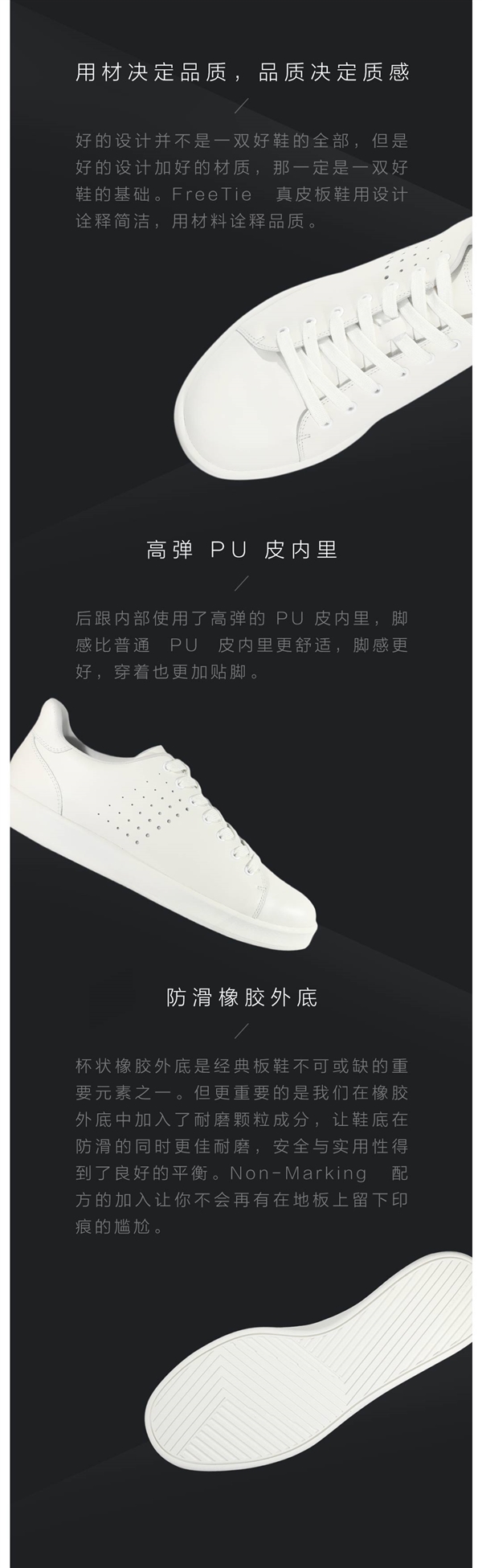 The Free Tie Leather shoe comes with a thickened first layer covering made of Nappa leather. Nappa leather is the general term for particularly soft, chrome tanned smooth leather of all animal skin types.So what you get is a soft outer body which contains ventilation pores for air to enter into the shoes and the spongy insole ensures it is comfortable to put om. The shoe is to a great extent completely handmade. It also has a cup-shaped rubber outer sole which protects against wear and tear. The outsole doesn’t have thread marks so it will leave no print on the floor, yet is non-slippery.