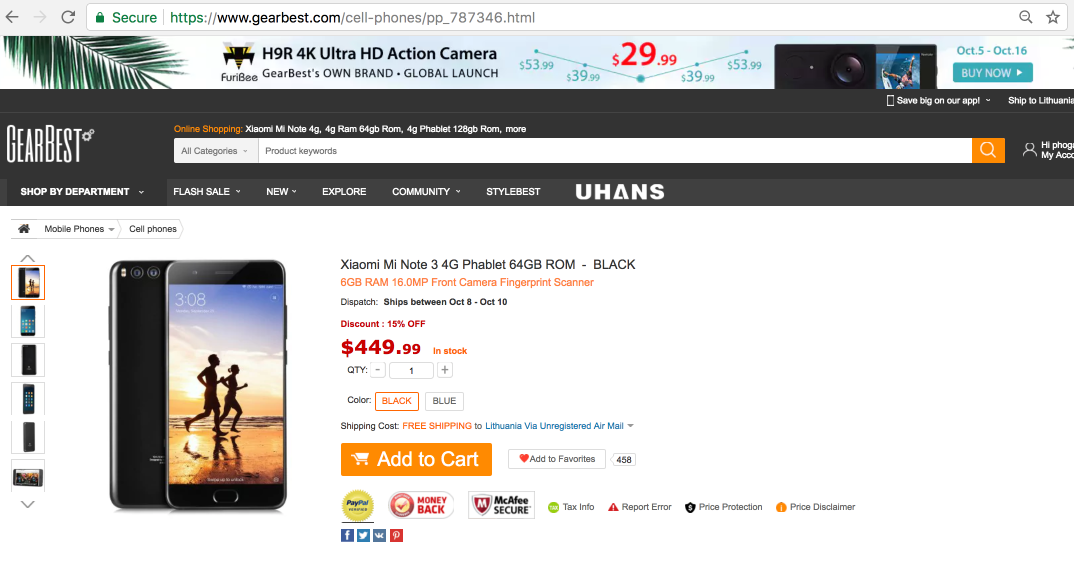 We will use our recently reviewed Xiaomi Mi Note 3 as an example. You simply have to add to cart any product you want and proceed to checkout.
