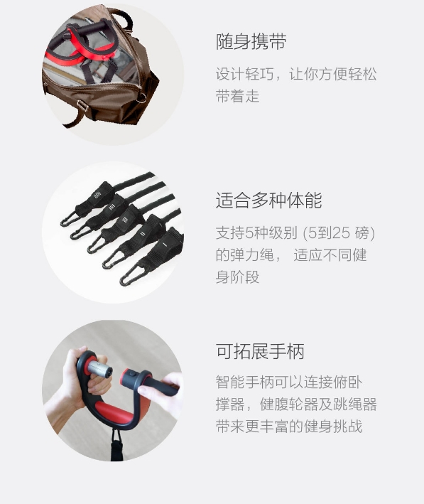 In case you are wondering how this is a smart fitness band, here is how. It has three large sensors, one is a touch sensor which detects when the hand is touching the handlebar. The second sensor is a six-axis sensor which identifies the handle posture while the third is a rally sensor for the elastic rope tension identification. The device also comes with Bluetooth 4.0 and can be connected to a mobile app to keep track of the progress of the fitness regime.The app is able to display actions like the completion of a fitness schedule, suggest correct movement posture, signify when an exercise is done correctly or wrongly. The app also records the consumption of each calorie and provides 24-hour online personal trainer support as well as private customization plan, health menu introduction and so on.