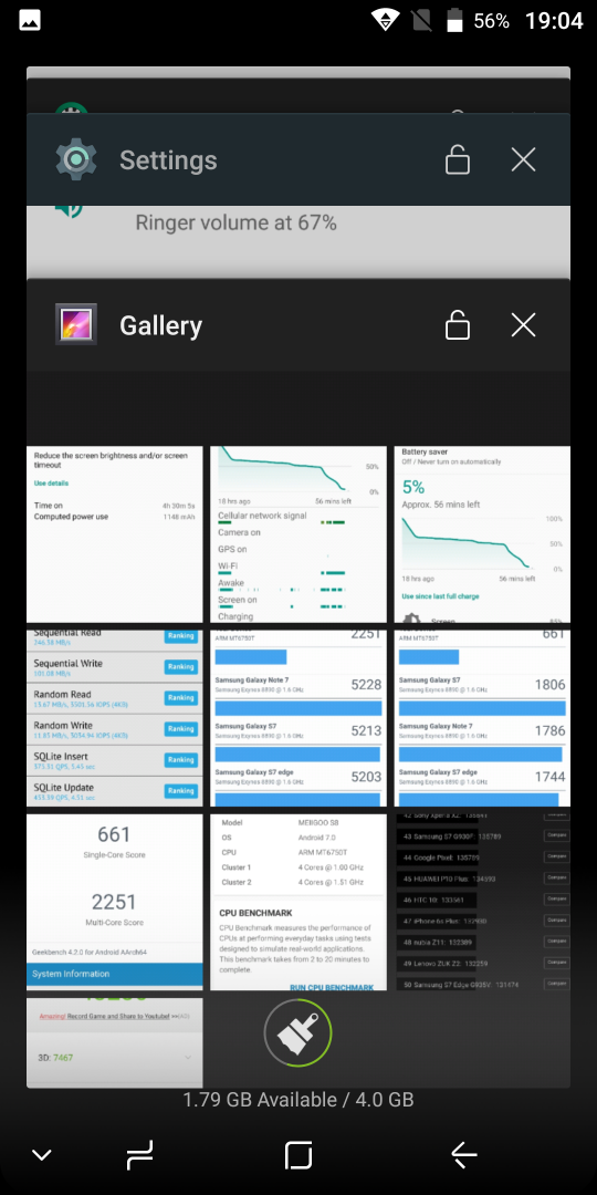 The phone runs Android 7 and it has preserved most of its stock look and feel but there are quite a few added features and customization options. You can choose from quite a few transitions effects, themes or wallpapers. You can also use a fingerprint scanner as a navigation pad but I didn’t find this feature to be convenient to use since the scanner is implemented on the back. You can also customize the navigation bar or select from quite a few smart features like a split-screen mode that works well.