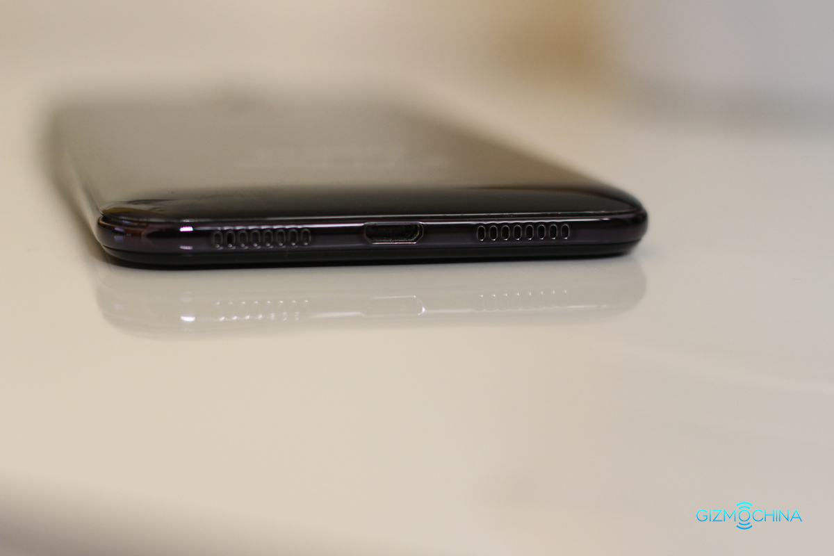 You have no physical buttons on the front, so navigation is through the on-screen buttons. The MicroUSB port and speakers lie at the bottom, while the headphone jack is located on the top.
