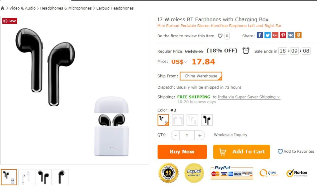 The device is usually dispatched within 72 hours and it is shipped within 10-20 business days. Those ordering the earphones with Charging Box can apply the promotion code ‘DPA4182’ before checking out to receive $4.36 discount and buy the I7 Wireless BT earphones for just $ 13.48.