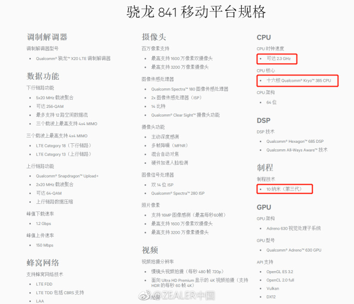 The Weibo post quotes an inside source that would prefer to keep his identity secret to have revealed the details in an exclusive message. The leak shows that the Qualcomm Snapdragon 841 chip has a 16-core architecture and this is the first Qualcomm chip with such architecture. Th CPU is capable of achieving an optimum clock speed of 2.3GHz which is lower than the 2.8GHz maximum clock frequency of the SD 845 chipset. The processor is still powerful. The chipset also incorporates an Adreno 630 GPU.