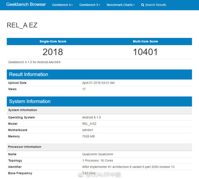 The leak also includes the GeekBench score of a device running on SDM 841 chipset. The device scored 10401 on the multi-core test which is surprisingly higher than the multicore test score of the SD 845-powered Galaxy Note 9 which hit GeekBench recently. The SDM 841 also score 2018 points on the single core test which is also impressive. We’ll have to wait for more details to emerge before taking this very seriously.