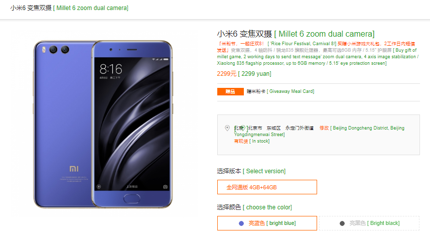 Last year, Xiaomi had launched the Mi 6 flagship phone on April 19 in China. At that time, the company had only released it in 6 GB RAM option. During the November 11 sales, its 4 GB RAM + 64 GB model was introduced with cheaper cost of 2,299 Yuan (~$365) while the 6 GB RAM + 64 GB storage and 6 GB RAM + 128 GB storage models continued to sell with respective pricing of 2,499 Yuan (~$395) and 2,899 Yuan (~$459). However, the 6 GB RAM variants are no longer listed on the official website of Xiaomi and retailing partners like JD.com. The company is currently selling only the 4 GB RAM edition of the Mi 6 in China. This could be a hint that Xiaomi may launch the Mi 7 flagship smartphone soon.