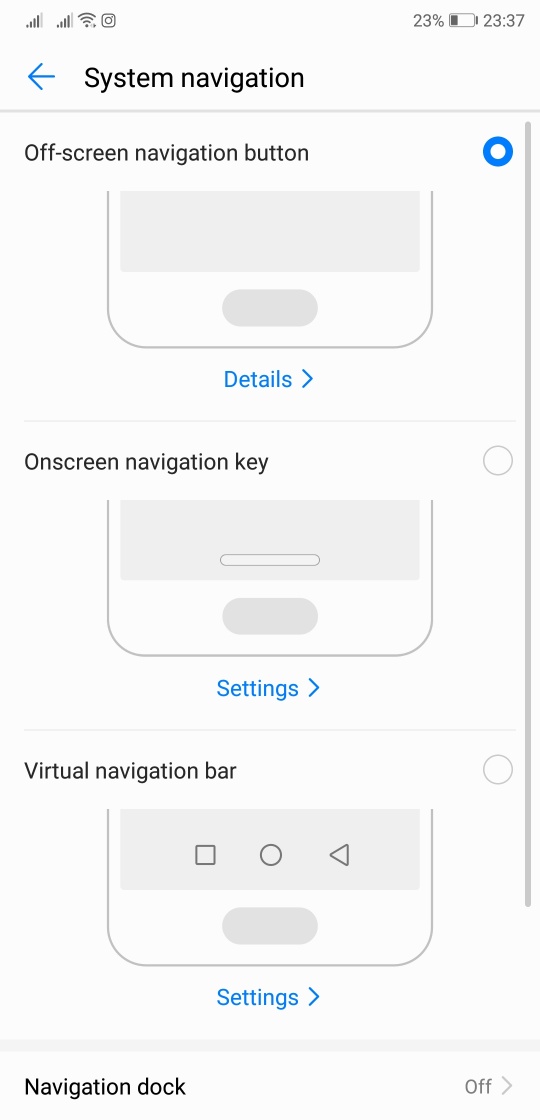 The very first thing you want to do is bring back the app tray. Other stuff you can do: customize the phone in many different ways. As usual, you can choose from plenty of themes, change transition effects, adjust quite a few display settings, use one-hand mode and so on. There are quite a few ways to navigate through the UI. You can simply use navigation bar and swap the buttons of it. You can also use a navigation dock that I didn’t really it like because I found on-screen and off-screen navigation systems more comfortable to use. You can control your phone using just the home button which is pretty convenient and that’s probably my most favorite way of navigating through the UI. Finally, we have classic Huawei smart assistance features which are useful and work fine but it’s still a bit weird since Huawei thinks that using your knuckle is the most natural way of interacting with your phone.