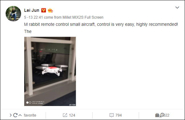 Lei Jun over a 3-day stretch recommended the product severally on his Weibo page. The several teaser posts by the CEO projects the several features of the MiTU drone including ease of operation, portability, HD camera as well as several demo photos of the device. On one instance, the CEO highly recommended the quadcopter drone to fans.