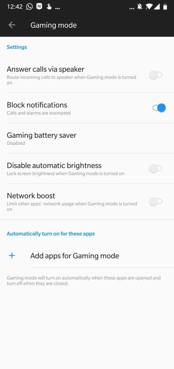 The same is applicable in the gaming mode. You can either assign apps or turn it on manually. Apart from blocking notifications, this particular mode allows you to tweak the battery consumption as well as network data priority. It’s a really handy feature for avid gamers. Personally, I don’t play a lot of games on my phone but I still like that you have the option to tweak these essential settings.