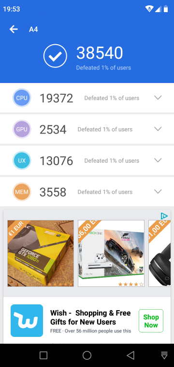 The overall performance is underwhelming. There is quite a lot of stutter, many skipped frames and even lag while using the phone on the daily basis with many apps installed.