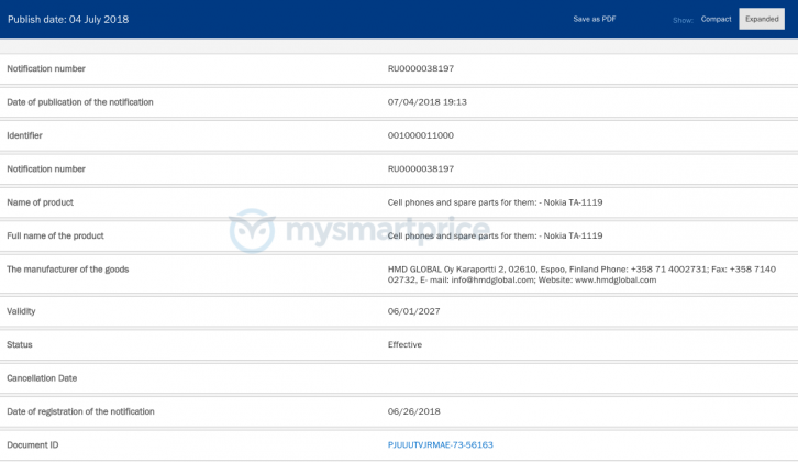 Above, you can see the listings showing TA-1119 and TA-1087 model numbers which have been filed yesterday 4th July 2018 at 19:13 PM local time. In the meantime, HMD Global has been busy launching the banana phone 8110 in Europe with a price tag of €89. The company has also announced that it is looking forward to adding the support to WhatsApp to this phone (in case you do not know, it is a feature phone, a re-visitation of the iconic 8110 launched in 1996), even though it does not have Android but it runs KaiOS, a fork of Firefox OS.