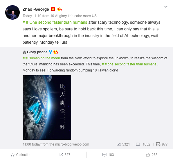 Earlier today, Honor’s weibo released a teaser celebrating the first lunar landing (July 20, 1969), and further added that there would be something revolutionary this Monday with the words “1 second faster than Humans”. To be honest, this teaser was quite unclear and many were left wondering what to expect from the company’s new announcement on Monday.