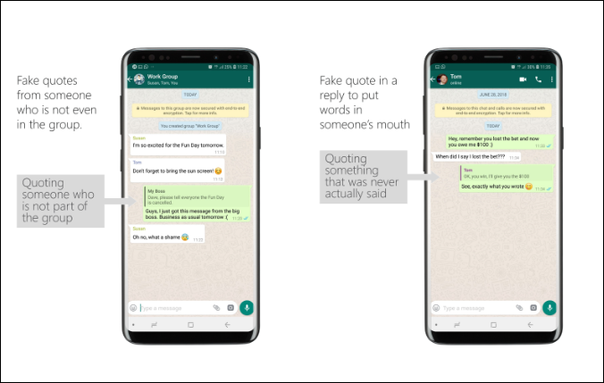 The research firm demonstrated three possible ways the vulnerability can be exploited and one of them is by changing a reply from someone to put words into their mouth that they did not say. Another way is by quoting a message in a reply to a group conversation to make it appear as if it came from a person who is not even part of the group. Thirdly, by sending a message to a member of a group that pretends to be a group message but is in fact only sent to this member. However, the member’s response will be sent to the entire group.