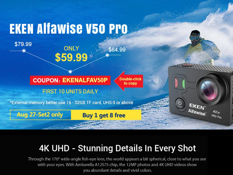 Get A Big Discount On EKEN Alfawise V50 Pro Action Camera