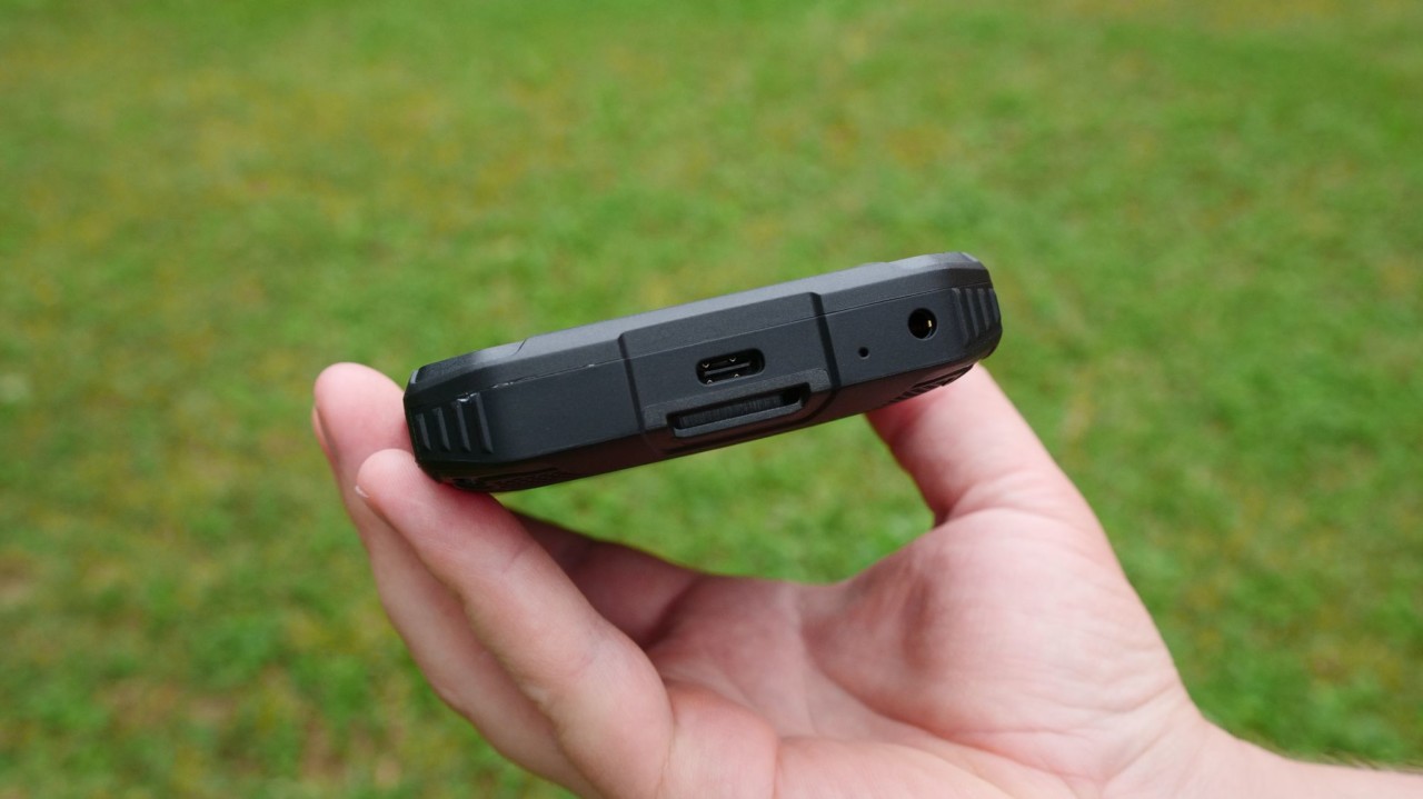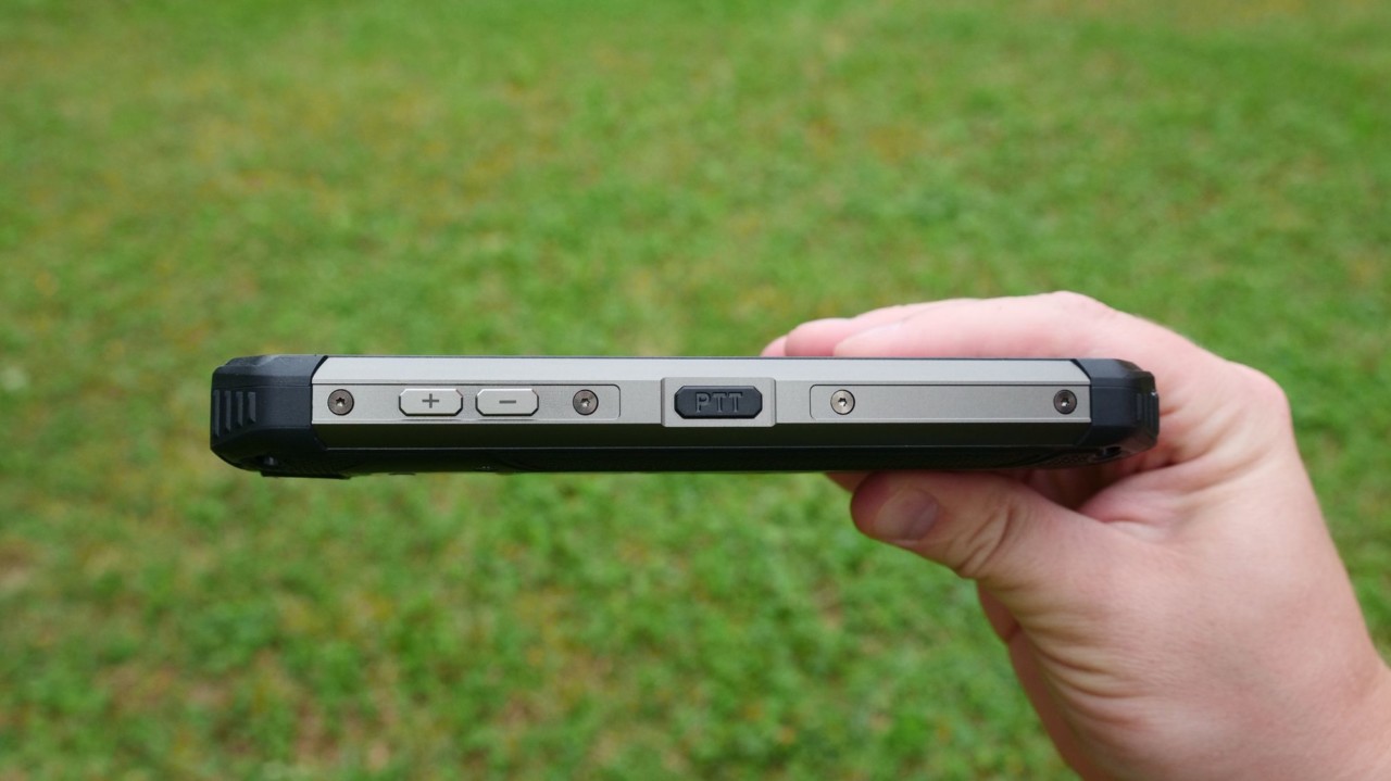 The buttons are very nice and premium too. There is also a programmable key that can be assigned to open up an app you want. In addition, there is a dedicated PTT button, if you ever need to use the push-to-talk feature. On the top of the phone, there is what I believe a port to attach an external antenna. On the bottom, you can find USB-C port and a headset jack. There is a lanyard hole if you ever need to carry the phone around your neck.