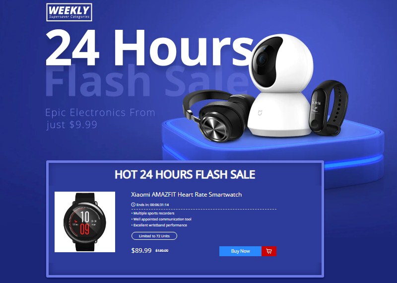 The first section dubbed, ‘HOT 24 HOURS FLASH SALE’ features just the Xiaomi Amazfit Heart Rate smartwatch, which normally sells for $130. Thanks to the aforesaid promotion, this coveted smartwatch can now be yours at a dropped price of just $89.99.