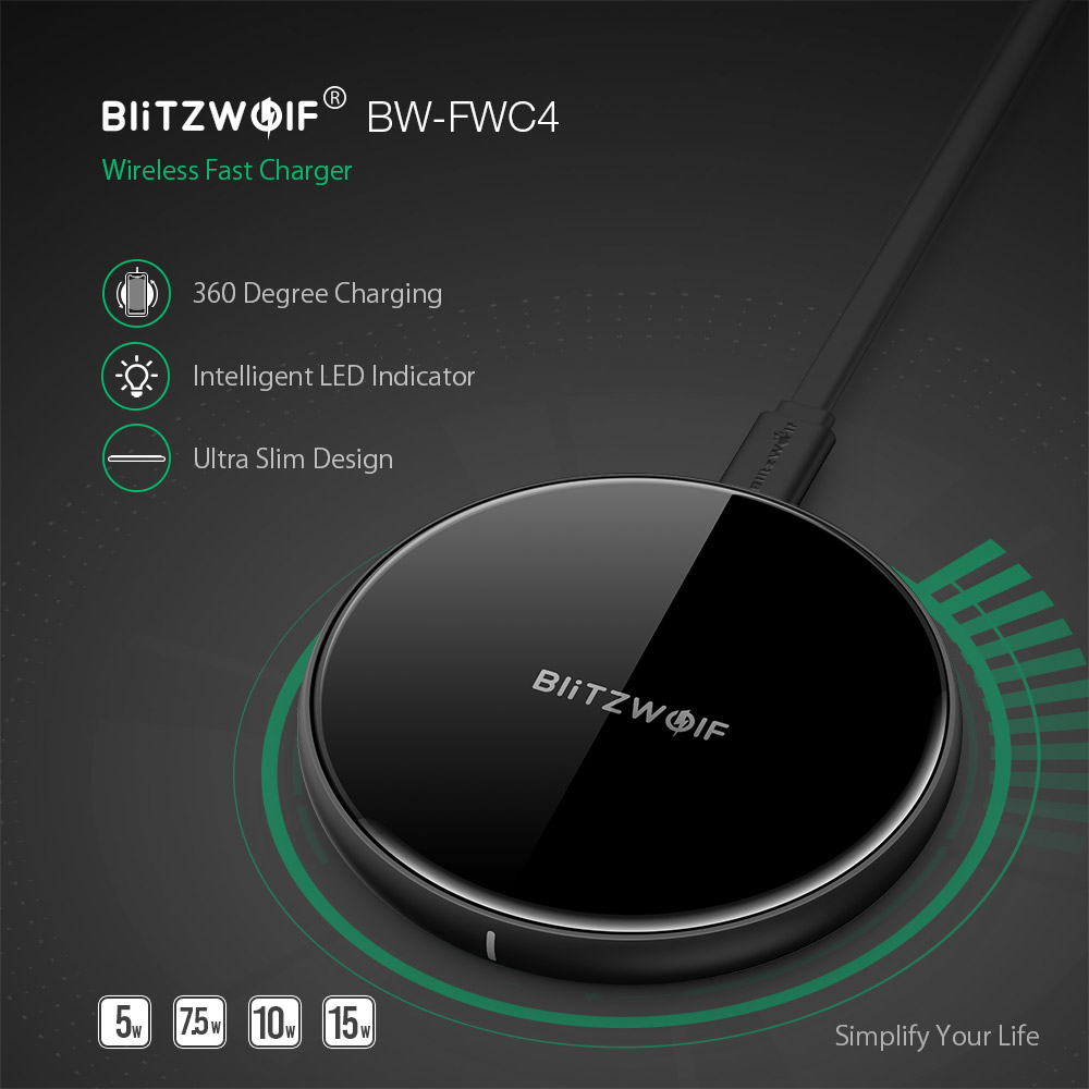 BlitzWolf BW-FWC4 5W Fast Wireless Charger Charging Pad+BW-S5 QC3.0 18W USB Charger