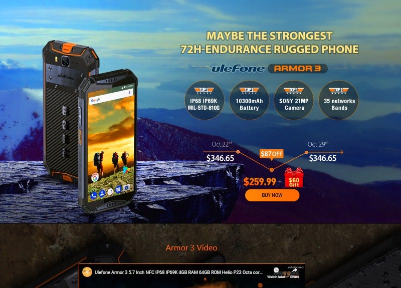 Ulefone took the wraps off its long-awaited Armor 3 smartphone in September this year. Much to the delight of those waiting to get their hands on this recently unveiled smartphone without spending a lot of money, the Armor 3 has gone up for pre-order bearing a dropped price on Banggood.