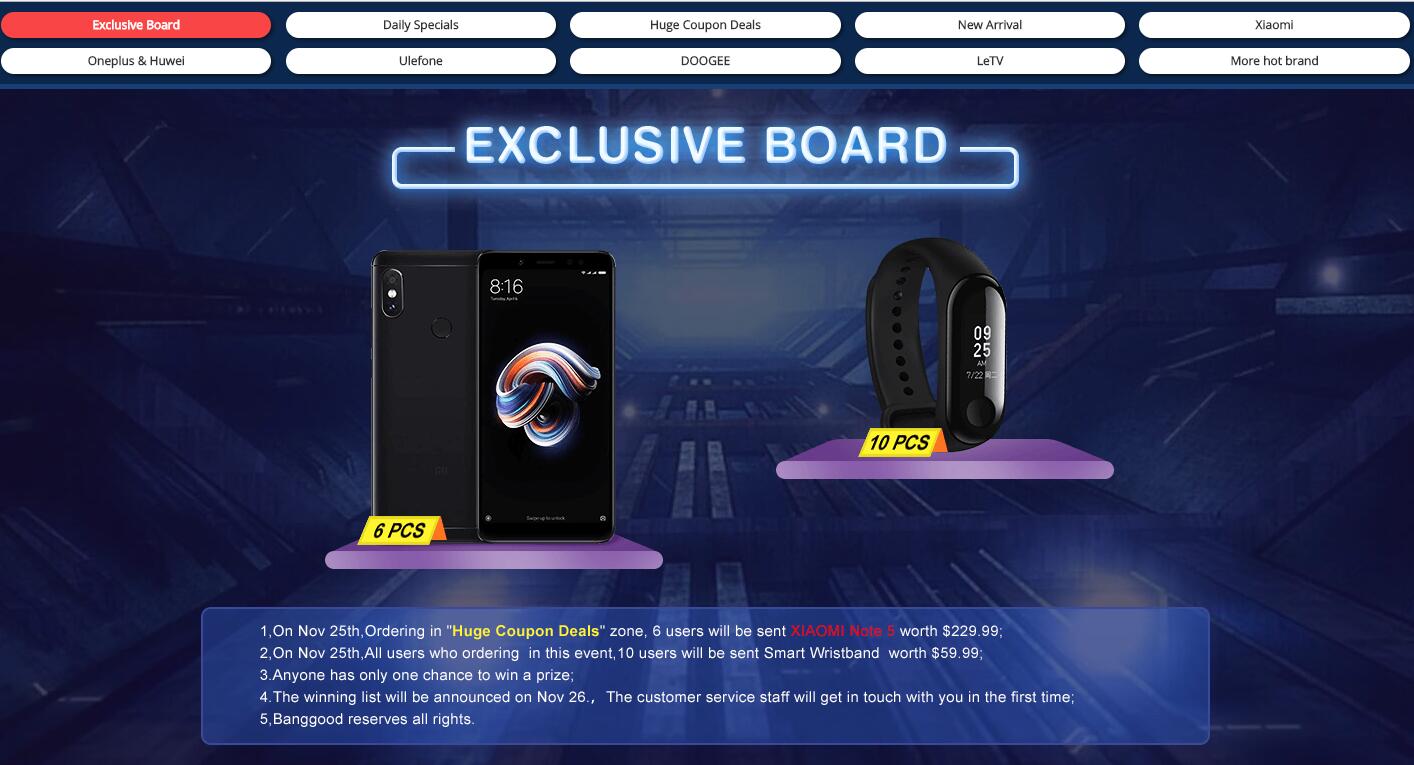 There are many online stores hold Black Friday Sale, Banggood also holds the promotion. Here is one of the deals page on Banggood’s Black Friday, called Brand Smartphone Shock and you can get big deals on a lot of brand smartphones. During Nov.21 to Nov.24 10 a.m. (UTC+8), it offers daily specials which have limited sale and bottom price. After that, the discount of brand smartphone will up to 70% off between Nov.25 to Nov.30 10 a.m. (UTC+8). Otherwise, it has an amazing exclusive board. On Nov. 25th, ordering in “Huge Coupon Deals” zone, 6 users will be sent Xiaomi Note 5 which worth $229.99. And on Nov. 25th, all users who ordering in this event, 10 user will be sent Smart Wristband which worth $59.99. You can click here to get more details about this event. This promotion of Banggood is well worth knowing.