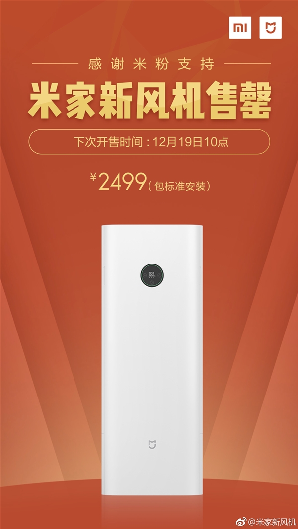 Xiaomi first launched the MIJIA Air Purifier/Ventilator last month in China during its Double 11 live broadcast. We had thought the device will go on sale during 11.11 but that didn’t happen. Rather the gadget was put on sale for the first time yesterday as part of 12.12 promotion. The device comes with a price tag of 2499 yuan ($343) and was apparently out of stock in no distant time. The device will go on sale again on December 19.