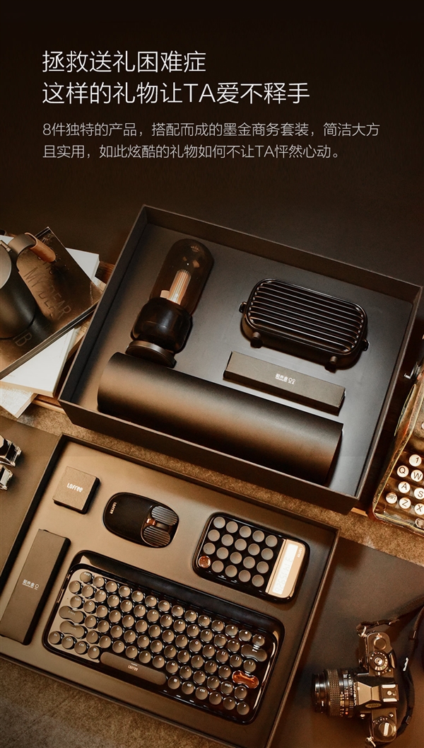 One sterling quality of the LoFree products is their groundbreaking retro & elegant design which elicits nostalgic. The gift set contains eight different products such as the Dot Bluetooth mechanical keyboard, Maus mouse, Poison Bluetooth speaker, Candly ambient lamp, Digit calculator, C.Medal commemorative keycap, and Black tote bag.