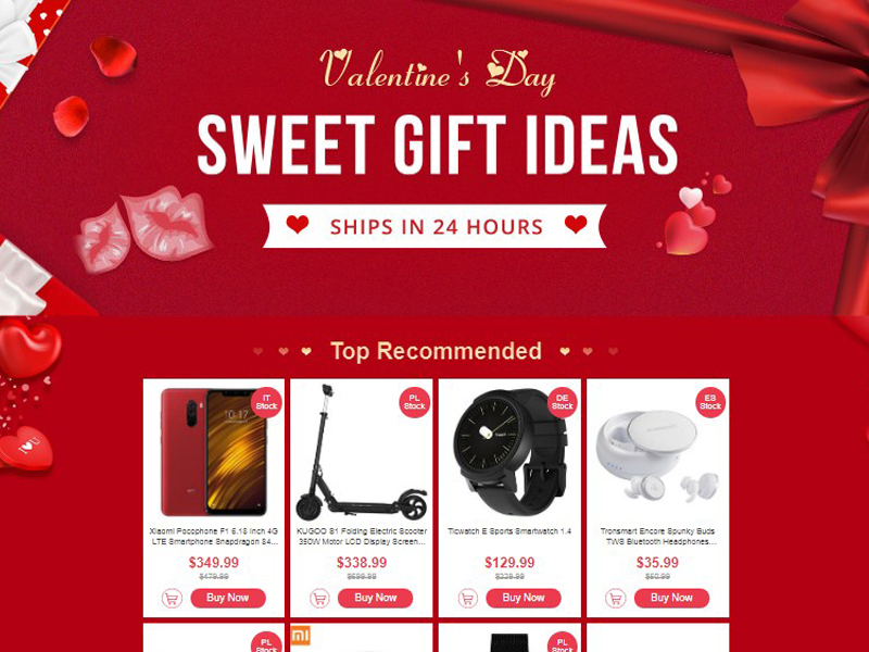 Dubbed as ‘Valentine’s Day EU Stock,’ this recently kicked-off promo has been split into multiple categories including Top Recommended, ES Warehouse, DE Warehouse, IT Warehouse, PL Warehouse, and More to Love.