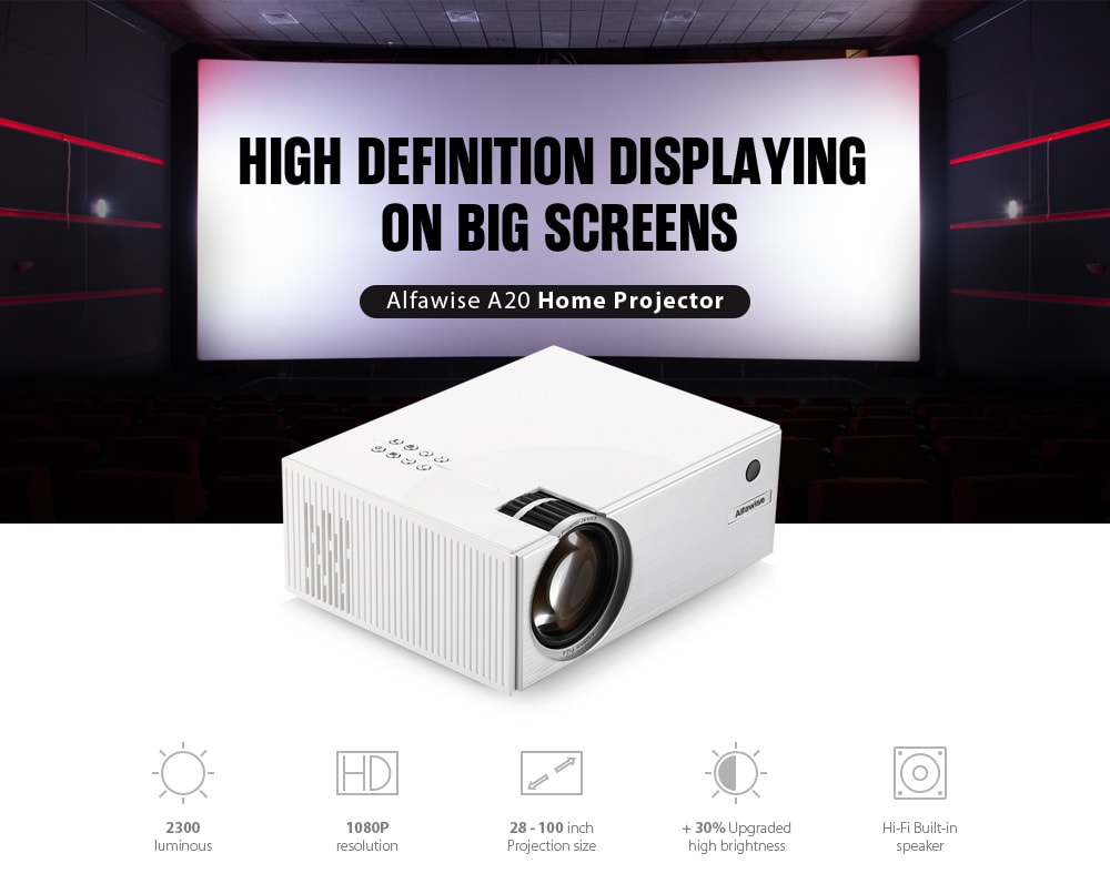 The A20 is the latest projector from Alfawise. This upgraded projector is capable of delivering up to 30 percent more brightness than a standard projector.