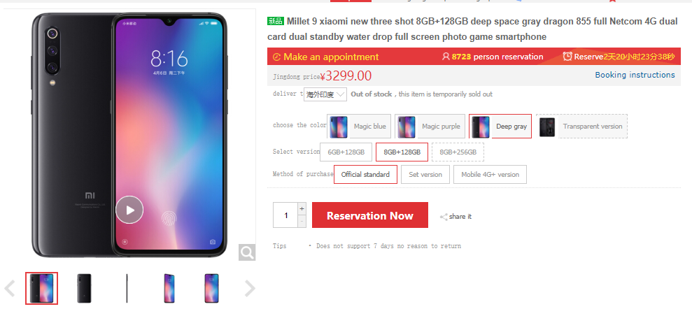 The Xiaomi Mi 9 was also made available for purchase at 10 AM (local time) today in China. While most of the variants of the phone are currently out of stock on Chinese retailer site Jingdong Mall, its 8 GB RAM + 128 GB edition is still available for purchase. Also, the 8 GB RAM + 256 GB storage variant of the Mi 9 Explorer Edition is also available for buying. These phones are respectively priced at 3,299 Yuan (~$491) and 3,699 Yuan (~$551). Hopefully, the other variants of these phones may also become available for purchase at any time in the near future.