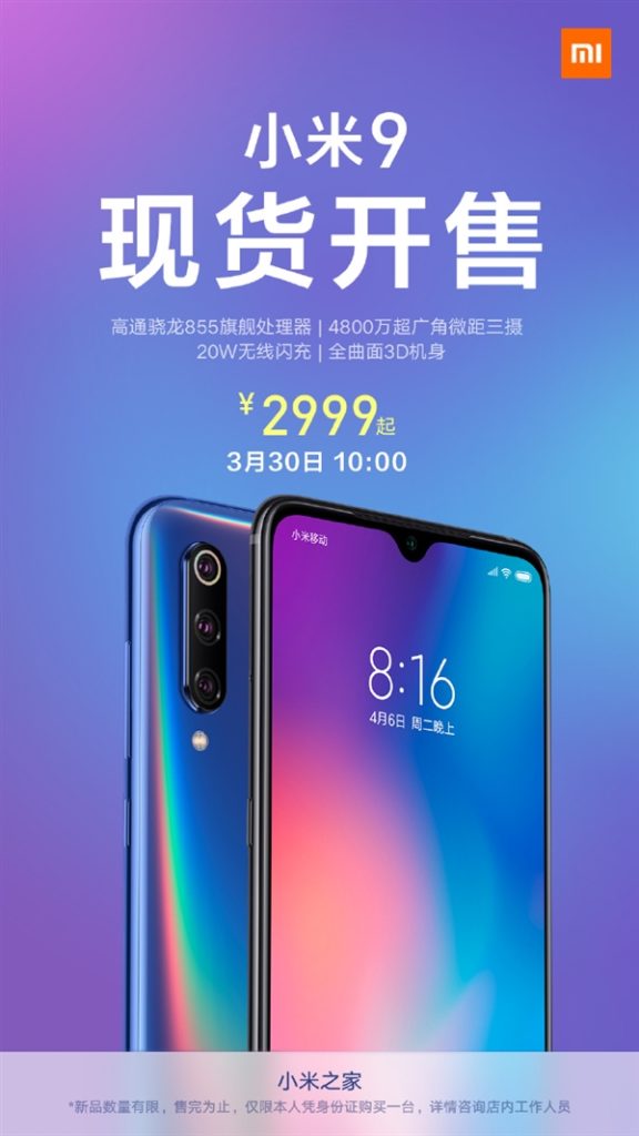Xiaomi‘s latest flagship Mi 9 series has been plagued by inadequate stock since the phone was launched last month. That has necessitated the company to ramp up its production, with Lei Jun even promising to handle a screwdriver in order to speed up the production process. Looks like the Mi 9 is back in stock as Xiaomi has scheduled another round of flash sale for tomorrow (March 30).